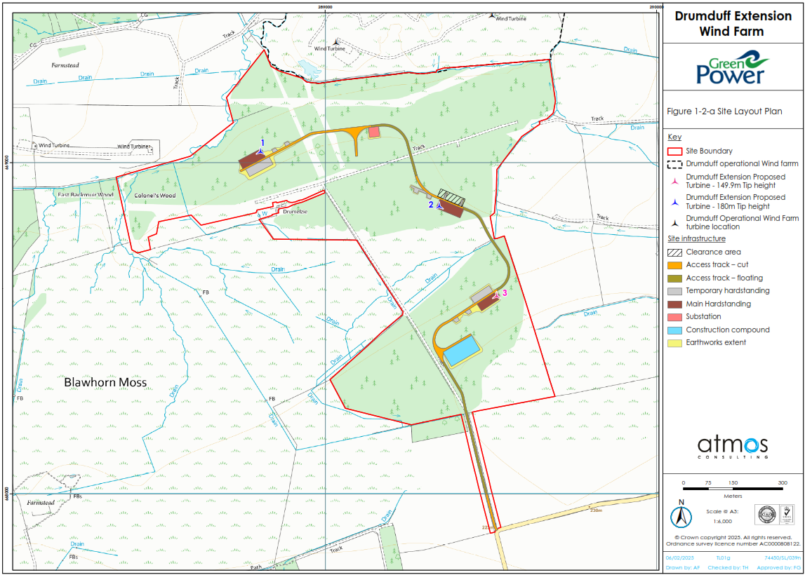 GreenPower and Thrive Renewables are delighted to announce that planning consent has now been approved by West Lothian Council for the amendment to the three turbine Drumduff Wind Farm Extension. Drumduff Wind Farm Extension previously received consent in April 2024, which comprised three turbines, two with a maximum tip height of 149.9m and one with a maximum tip height of 135m, and an expected generation capacity of up to 15MW.